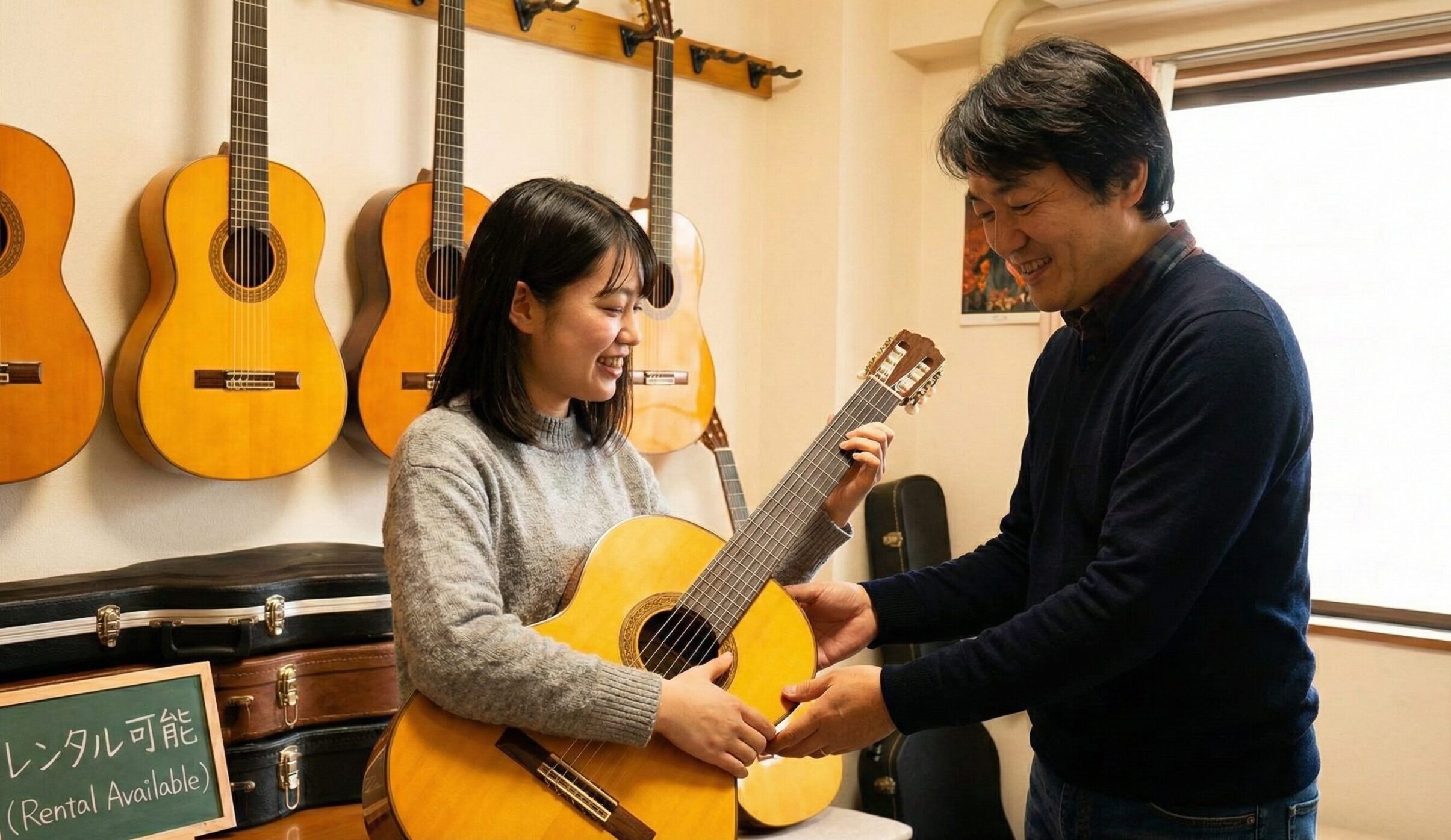 「家にギターを置くところがないので、毎回教室で借りられるのか不安です…」