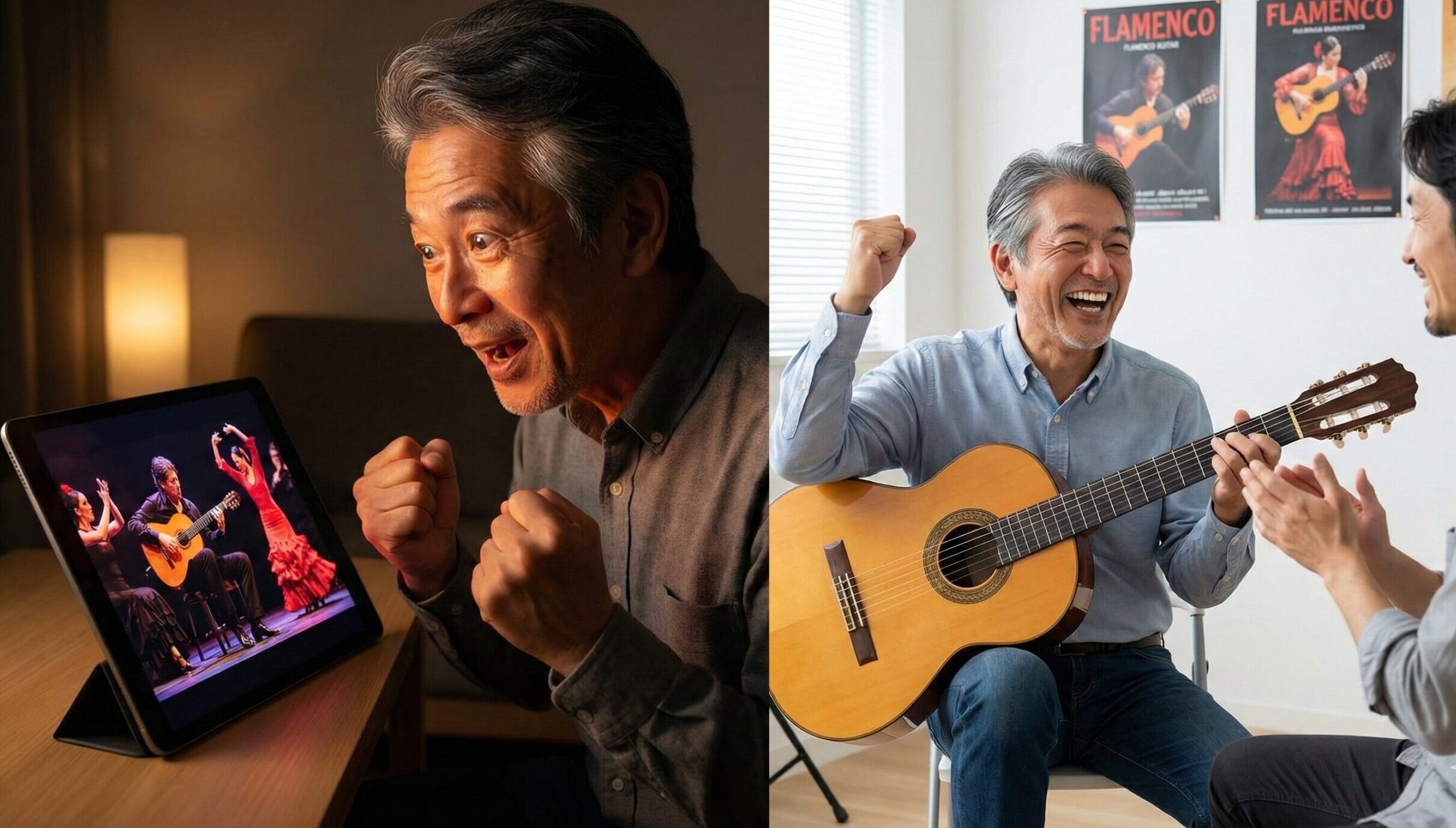 フラメンコは、踊り手や歌い手との「共創」です。 伴奏であるギターが止まると、踊り子さんがズッコケます(笑)。