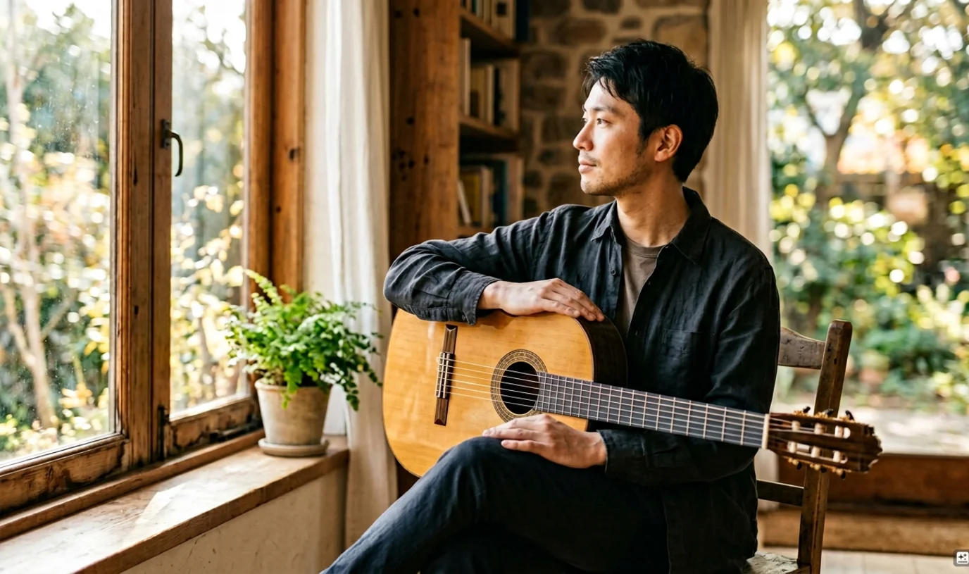 「エレキやアコギを20年弾いてきて、昨年はスペインのグラナダに2ヶ月滞在。