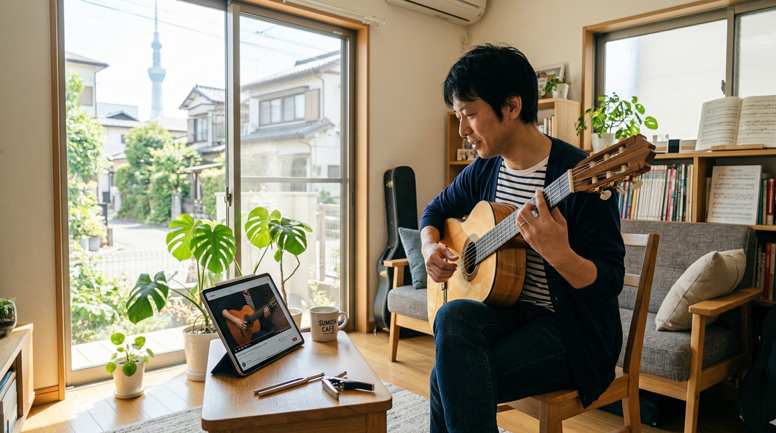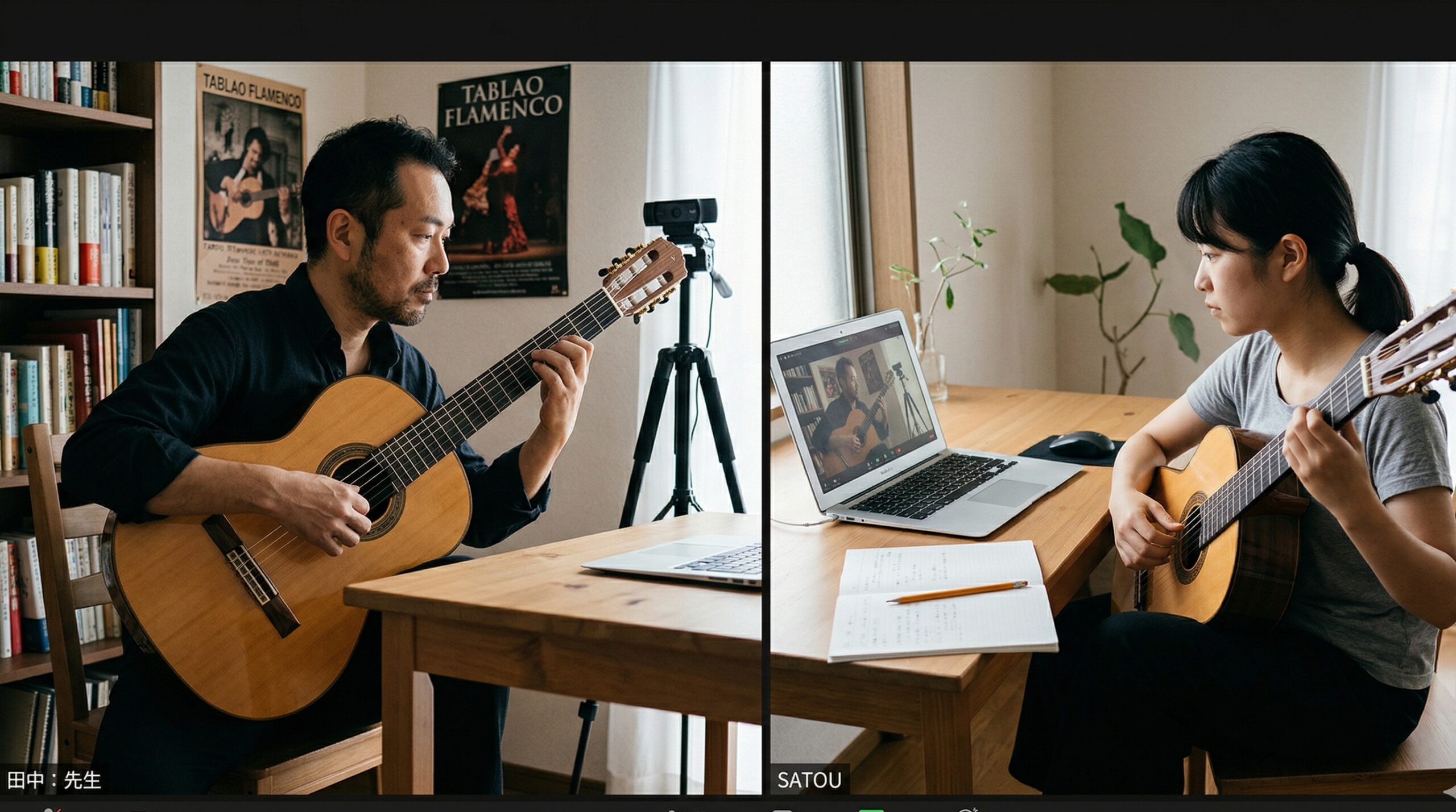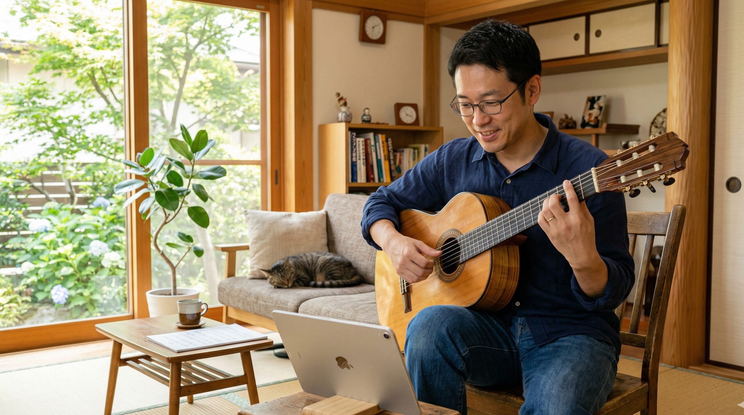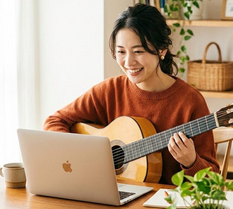 教室に来るときって、少し気張りますよね。でも自宅なら、いつもの椅子で、いつものギターで、いつものポジションで受けられる。だから「家で練習するとうまくいかないのに教室だとうまくいく」みたいなギャップが起きにくいんです。