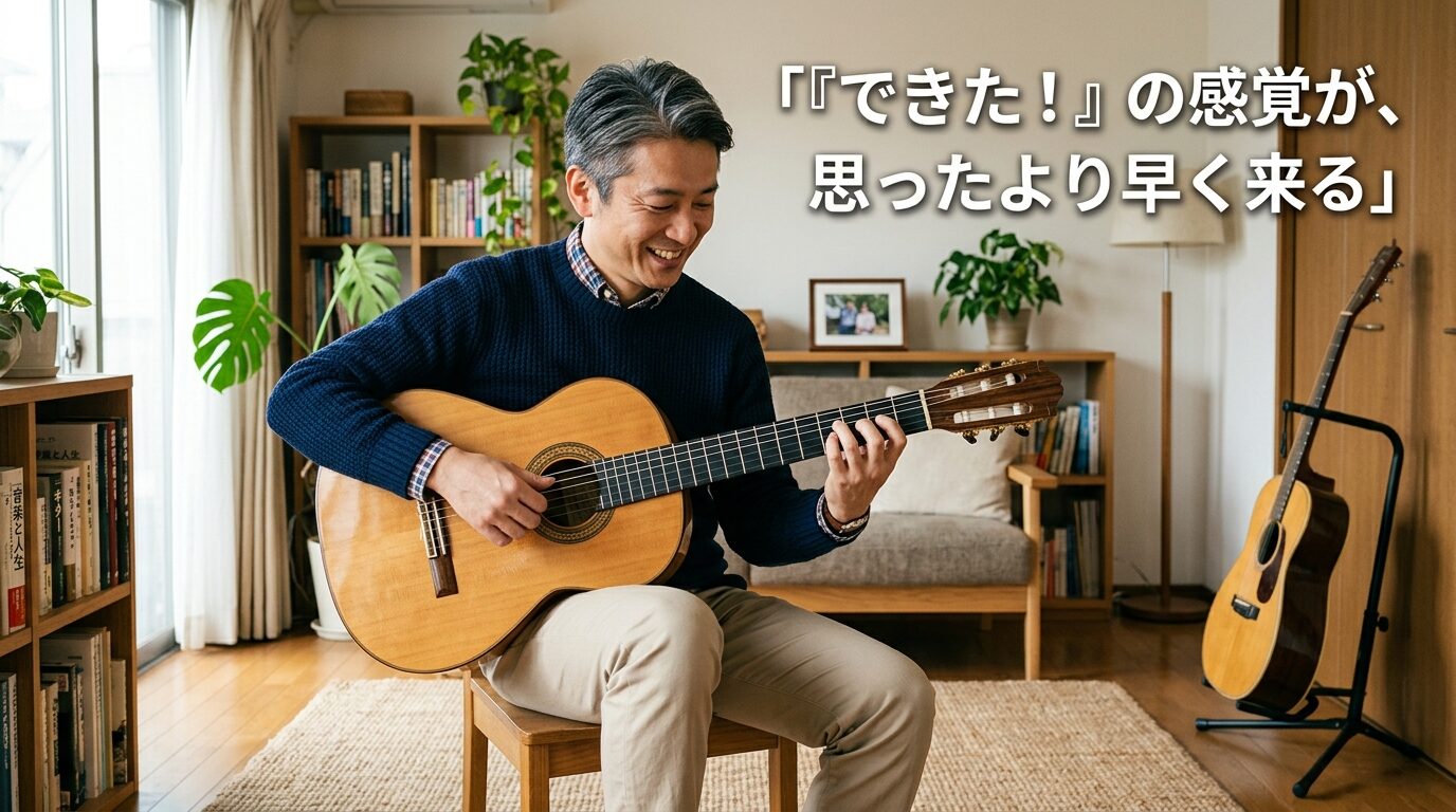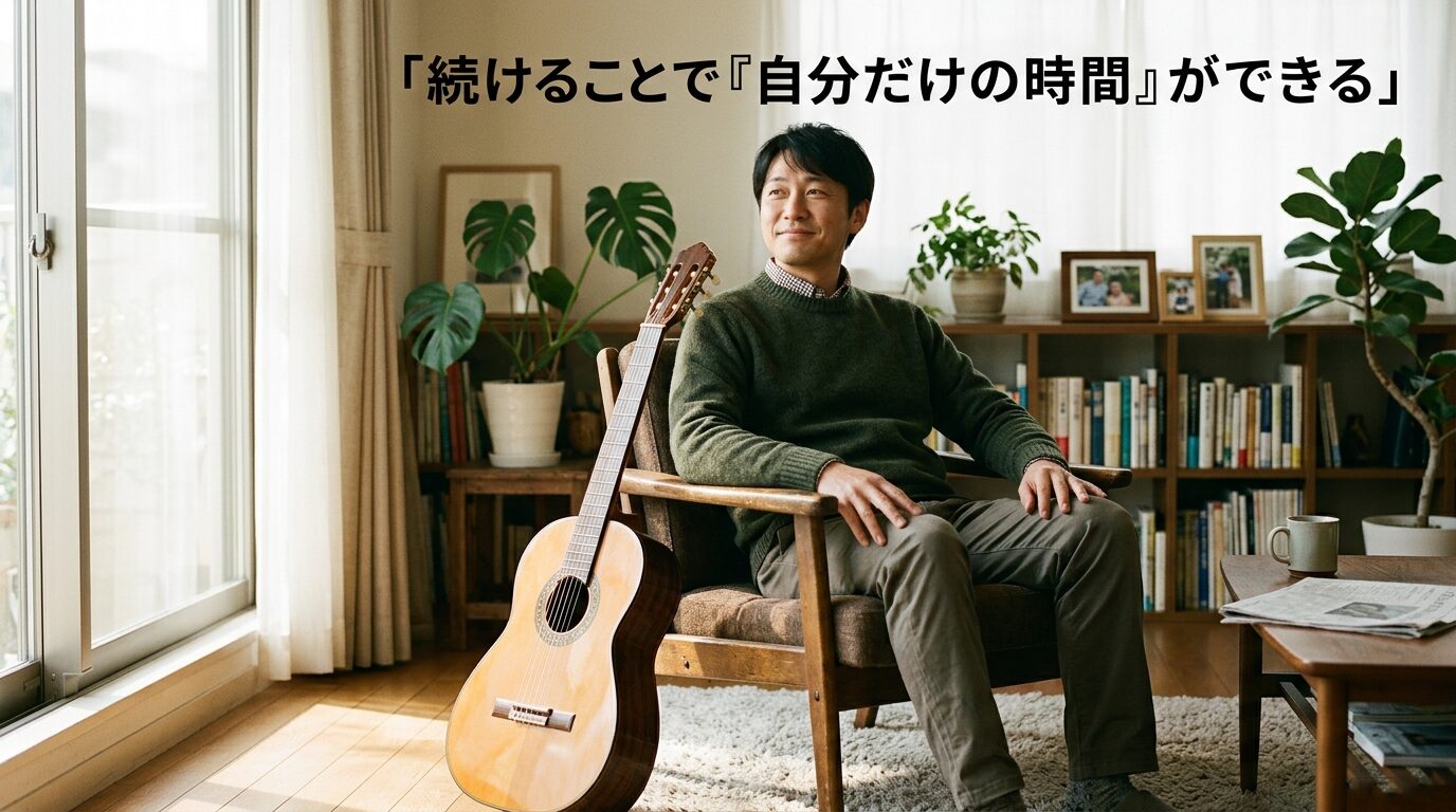 40代からギターを始めた人が、家庭でも機嫌よくなる。これ、副次的な効果すぎますが、地味に最高じゃないですか。