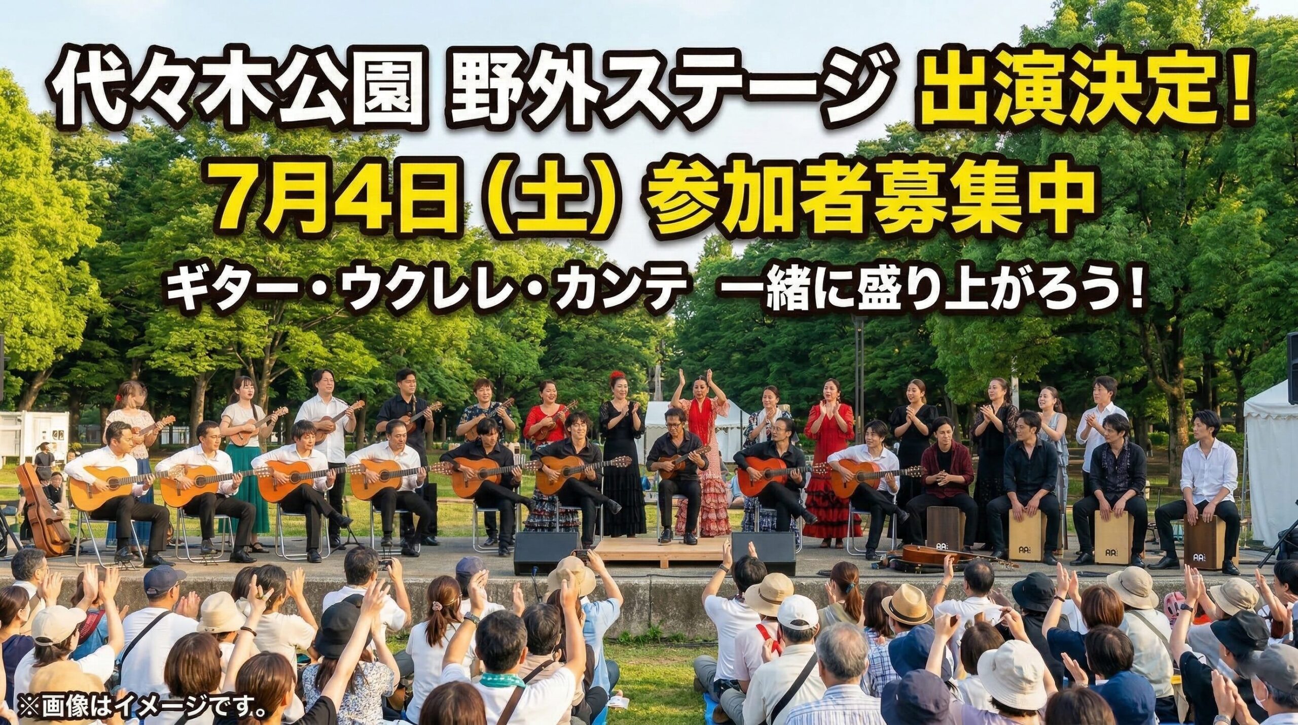 7月4日(土)、代々木公園の野外ステージに出演します!!