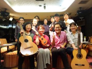 はじめてギターを弾く人。はじめてフラメンコを歌う人。はじめて踊る人。それぞれが思い思いに楽しんでいます。